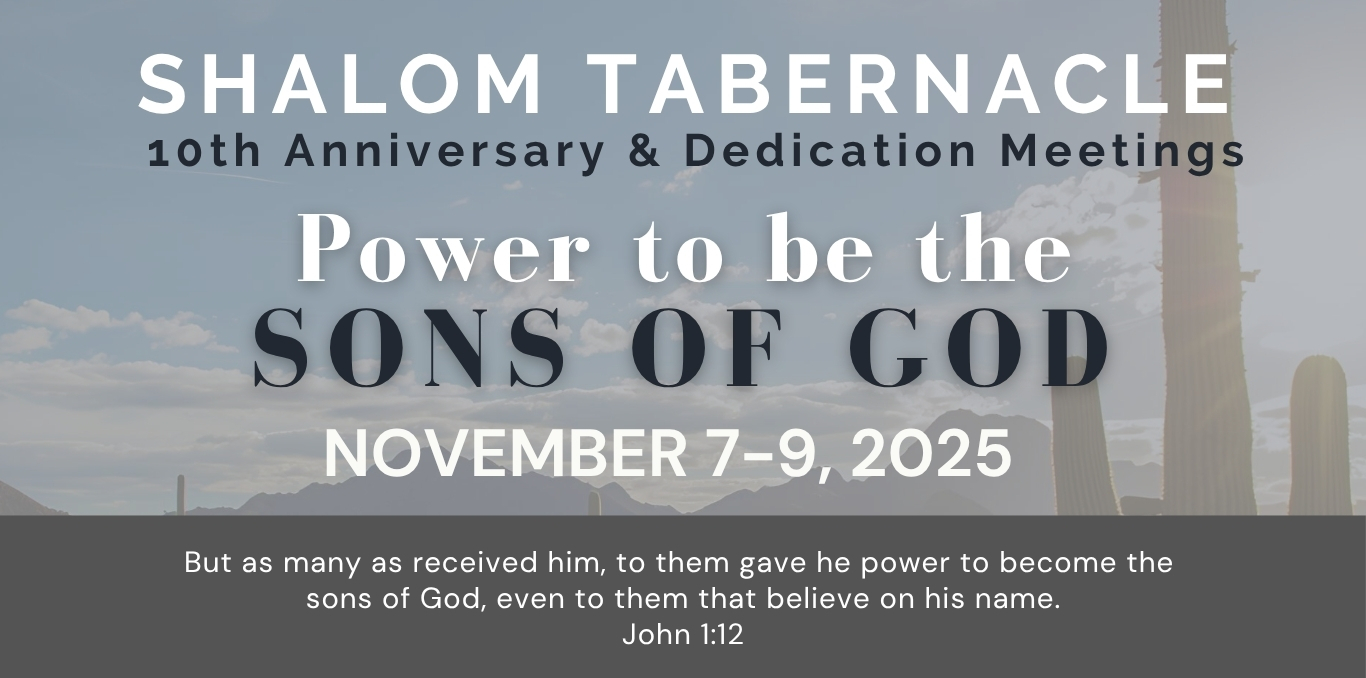 Shalom Tabernacle is a nondenominational Christian church, dedicated to spreading the Gospel of Jesus Christ. Since 2016, we have endeavored to lead people to accept Jesus as their Lord and Savior and to recognize the message that He has sent to his Bride in this day.